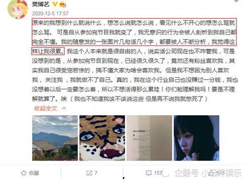 最近娱乐圈可是炸开了锅,咱们就来说说那位神秘又多才多艺的樊博艺。没错,就是那个在舞台上光芒四射,私下里又低调得让人猜不透的明星。今天,就让我带你一探究竟,揭秘樊博艺的最新爆料!